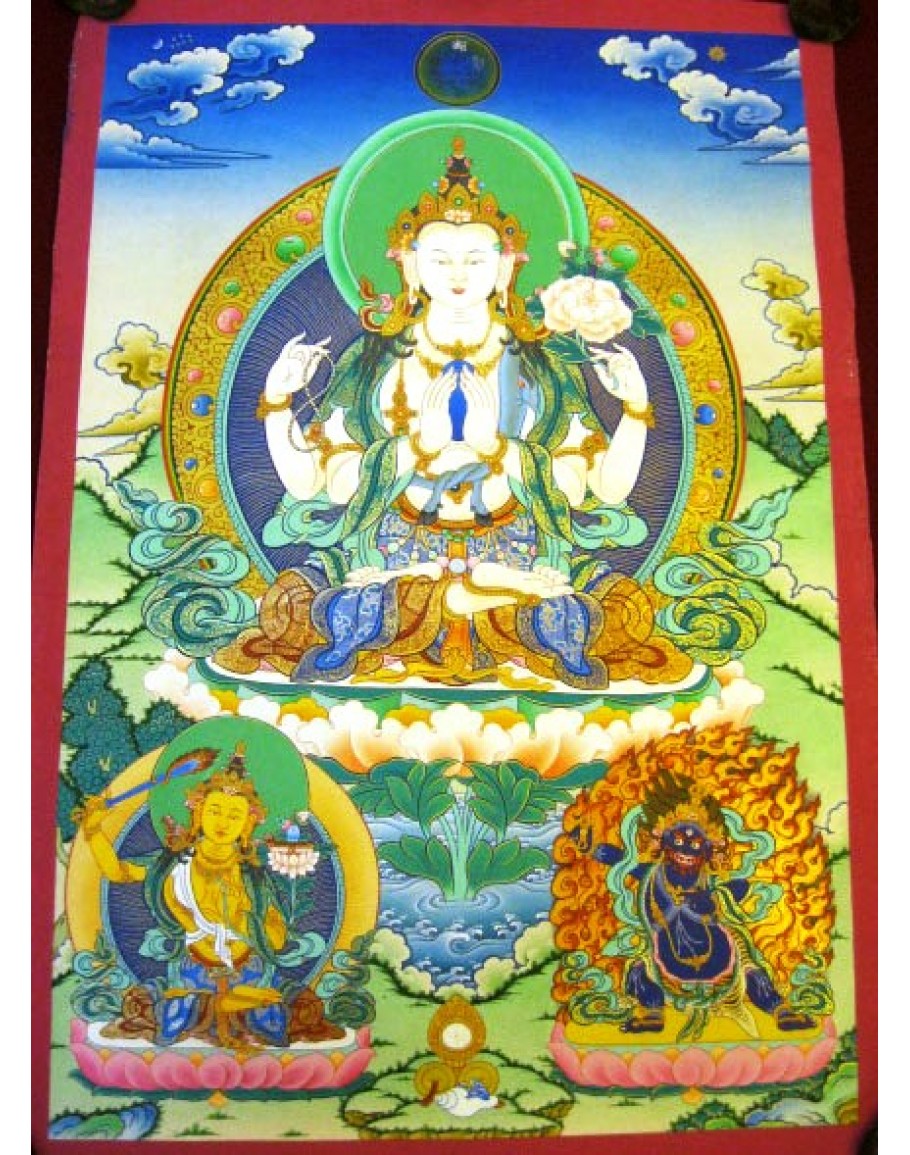 • Chenrezig main highlighted and below deities are Manjushree and Vajrapani